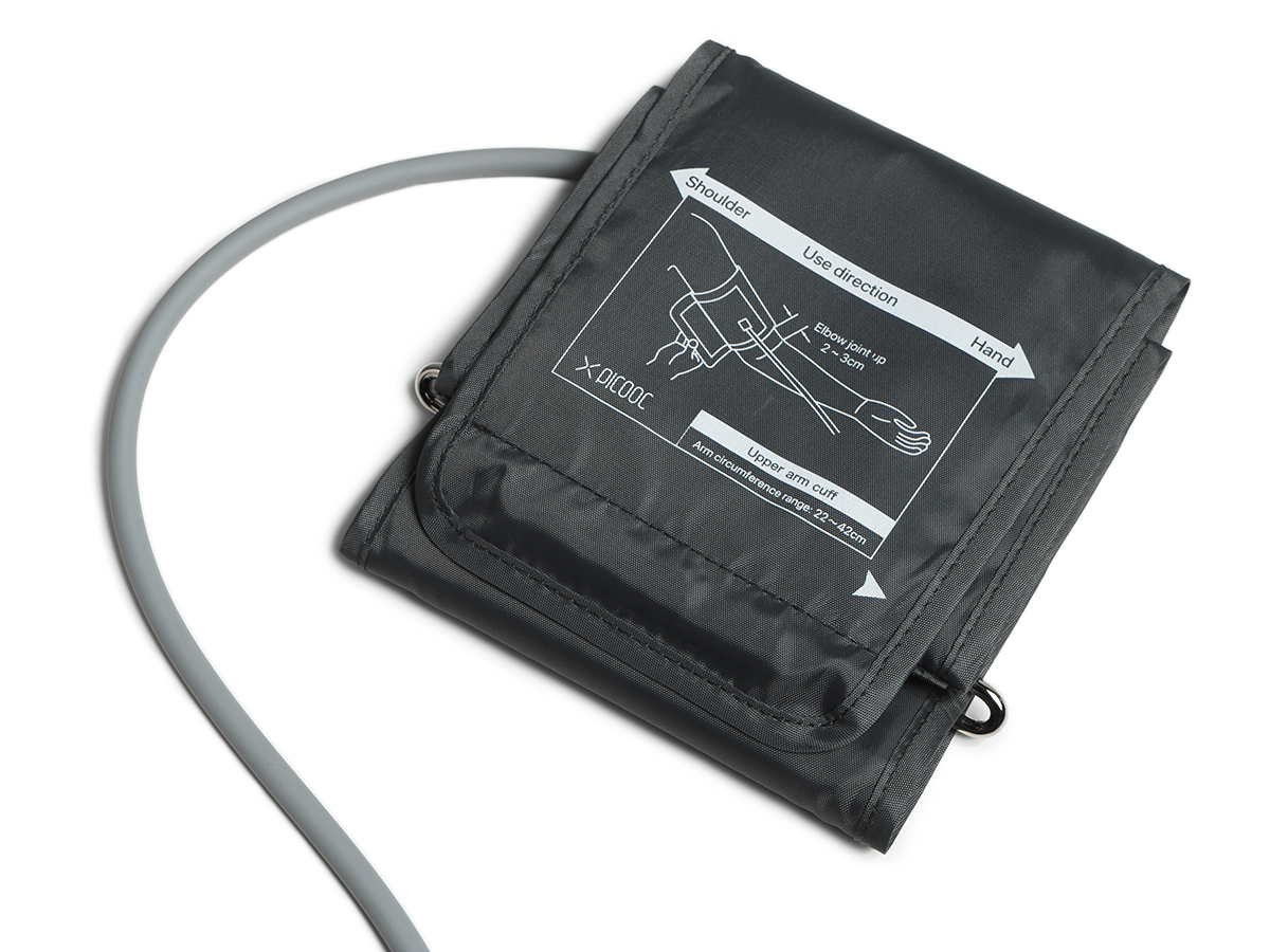 Показания снимаются при помощи универсальной манжеты с обхватом руки 22–42 см. Такие размеры подходят для большинства пользователей.